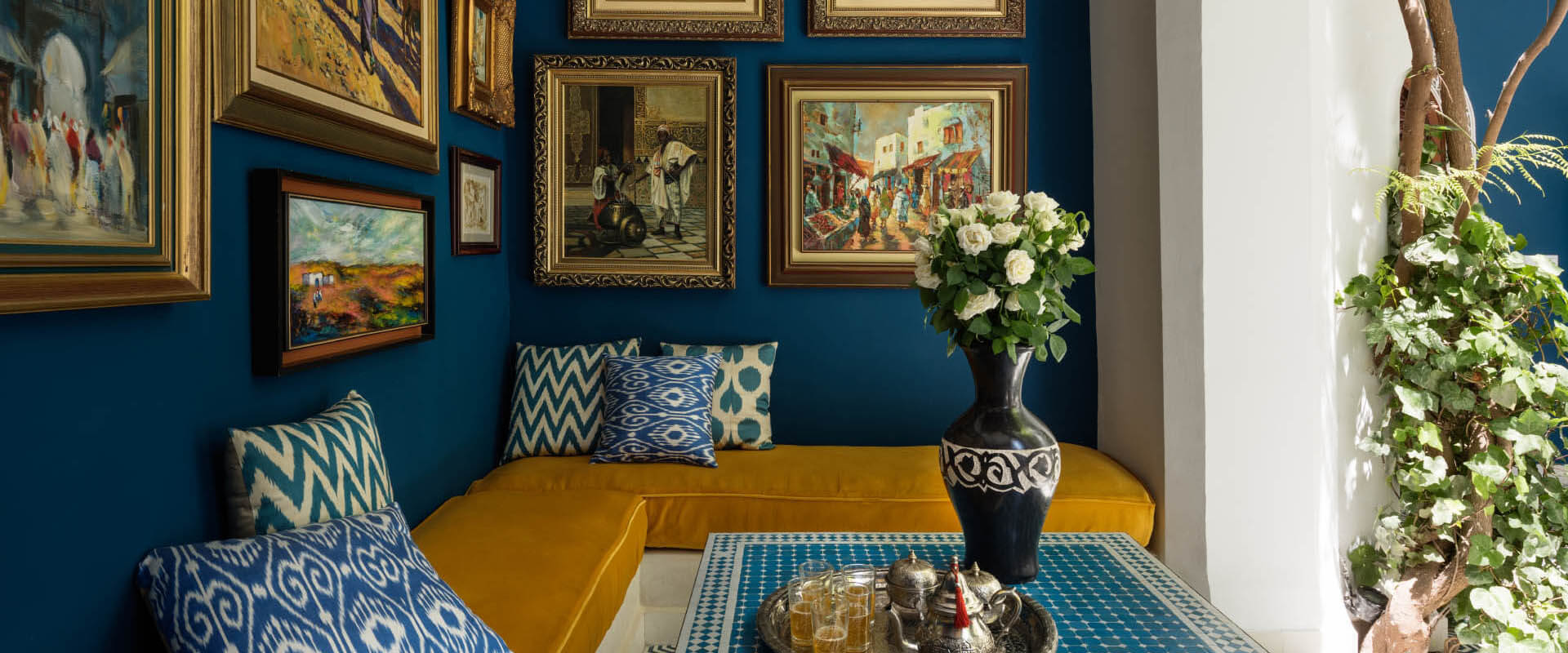 Riad Les Yeux Bleus’ balanced blend of contemporary and traditional styles (with a pop art touch in the choice of colours) reflects upon the current nature of Marrakech, where vibrant urban life and a varied choice of trendy bars, art galleries, and restaurants coexist in friendly symbiosis with the ancient ways of the city.